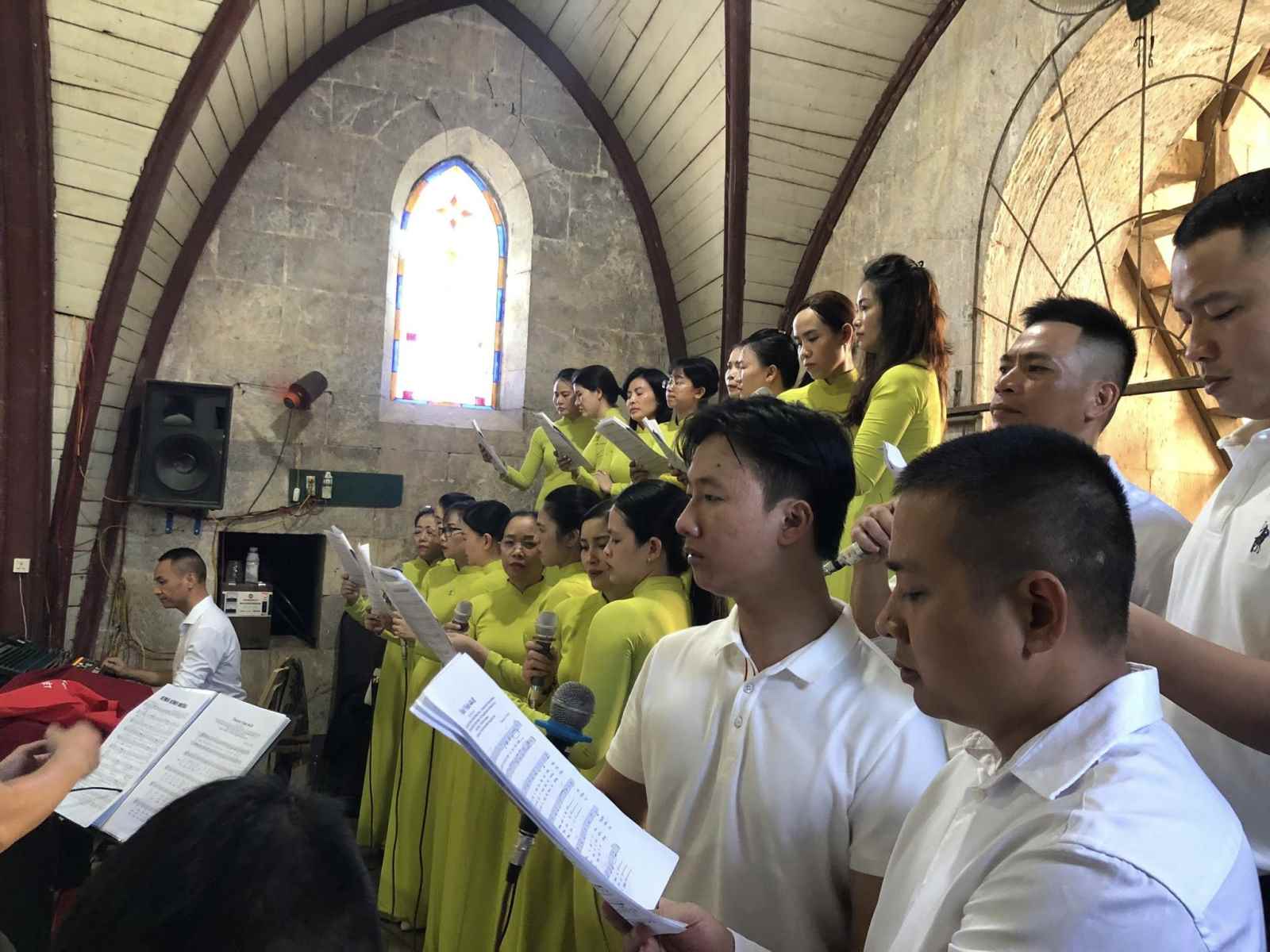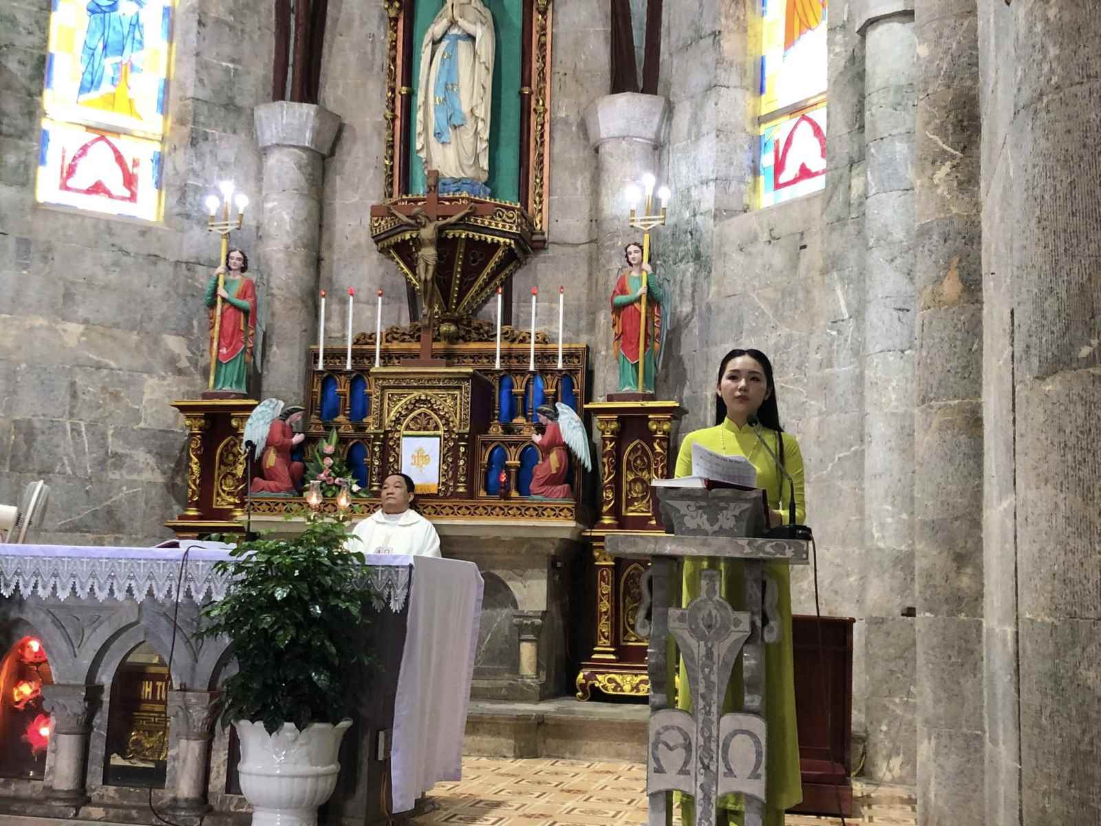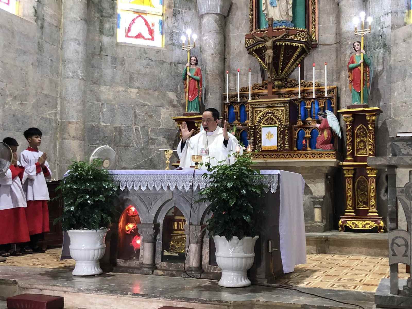 Đúng 15h30, Thánh lễ hành hương được cử hành. Ngỏ lời đầu lễ, Cha Gioan Baotixita chia sẻ ý nghĩa Năm Thánh Hy Vọng và giới thiệu về điểm hành hương Nhà thờ đá Bảo Nham – một trong những địa điểm được Giáo phận chọn để hưởng ơn toàn xá trong Năm Thánh. Cha mời gọi cộng đoàn, đặc biệt là các ca viên, dâng lên Mẹ lời cầu xin cho mọi thành phần trong Giáo hội, để mỗi người luôn được bình an, đem lời ca tiếng hát ngợi khen Thiên Chúa và phục vụ cộng đoàn.