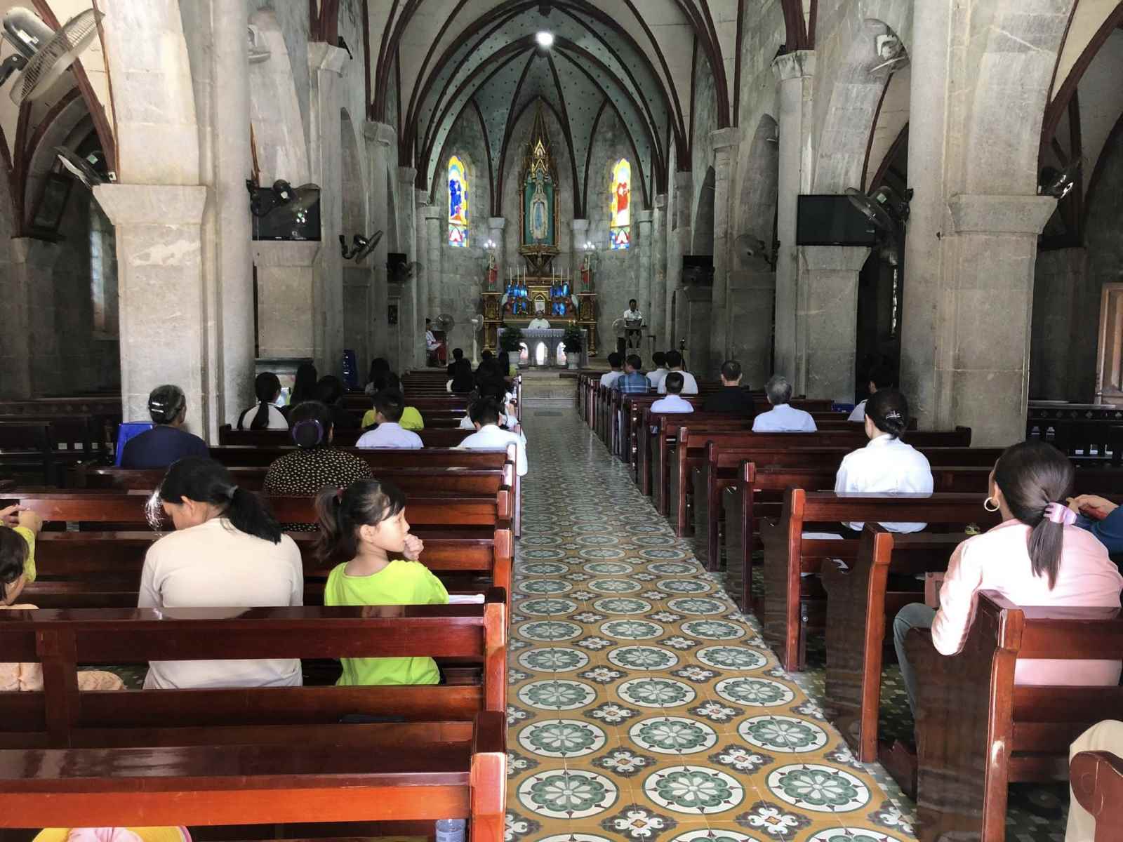 Dù thời tiết oi bức của mùa hè khiến nhiều người ngại ra ngoài, nhưng với tinh thần phục vụ và lòng yêu mến Đức Mẹ nồng nàn, đoàn vẫn lên đường với tâm tình sốt mến. Xuất phát từ Giáo xứ Cầu Rầm, vượt qua quãng đường hơn 50km về với Mẹ Bảo Nham, đoàn được Ban Năm Thánh Giáo xứ tiếp đón ân cần, chu đáo. Sau ít phút nghỉ ngơi, đoàn cùng nhau lên Nhà thờ đá dạo quanh chiêm ngắm ngôi thánh đường được xây dựng bằng đá – một công trình kỳ công của cha ông để lại cho Giáo xứ Bảo Nham yêu dấu.