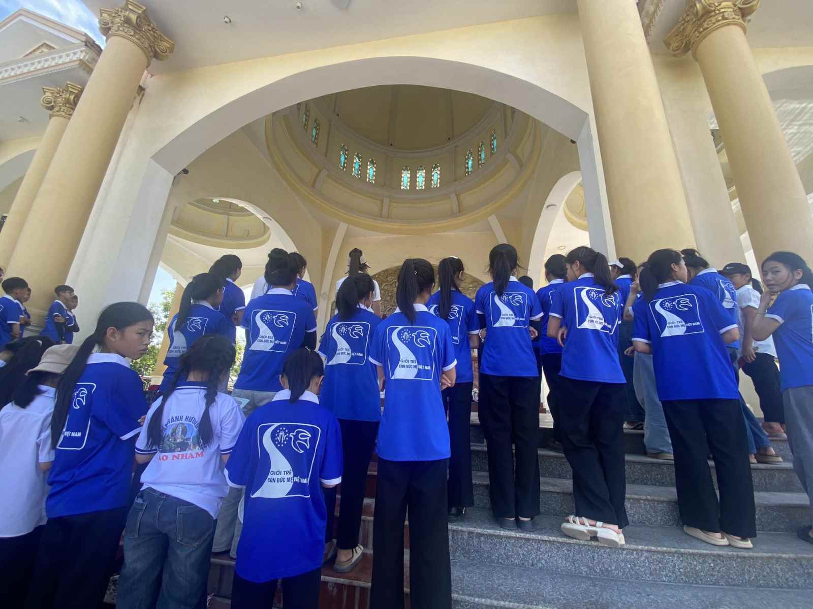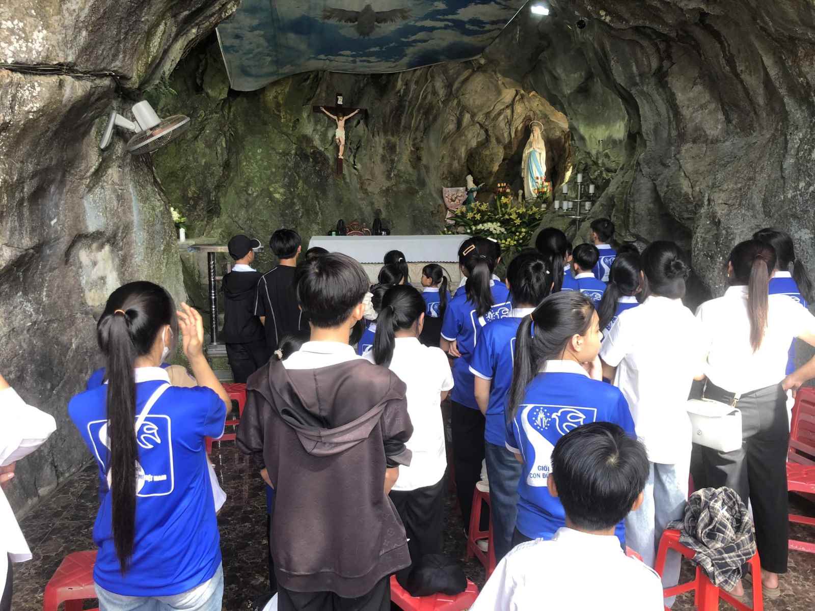 Về với Đức Mẹ Bảo Nham Tham gia cùng Đoàn còn có các mẹ bảo trợ để dẫn dắt các em trong chuyến hành hương này, sau những giây phút nghỉ ngơi và suy ngắm những kỳ công và là những dấu chứng Đức tin mà cha ông để lại. Cùng với các bảng hiệu các em được biết những sự kiện nơi Giáo xứ đã diễn ra cách đây 140 năm qua bàn tay của Đức Mẹ.