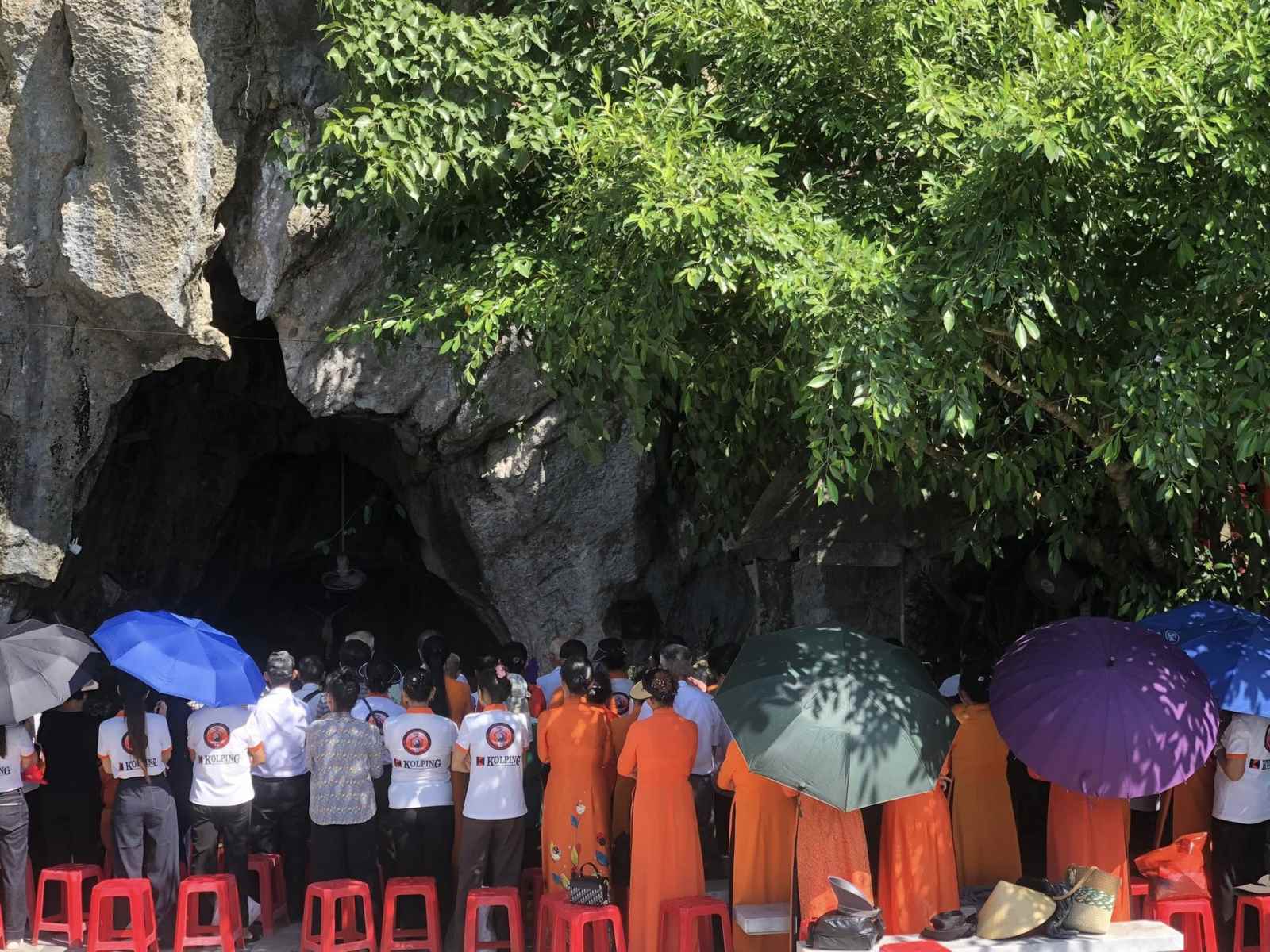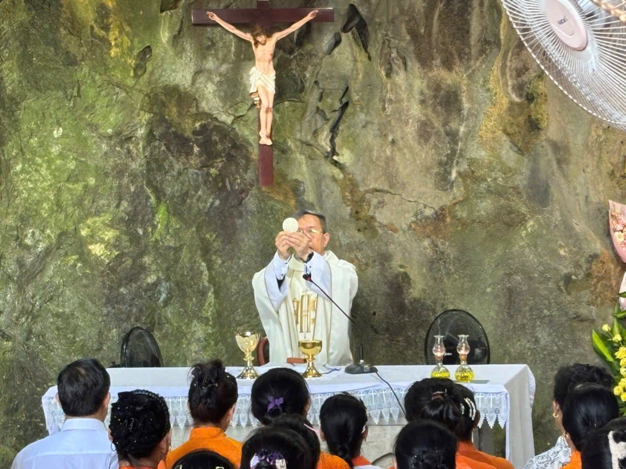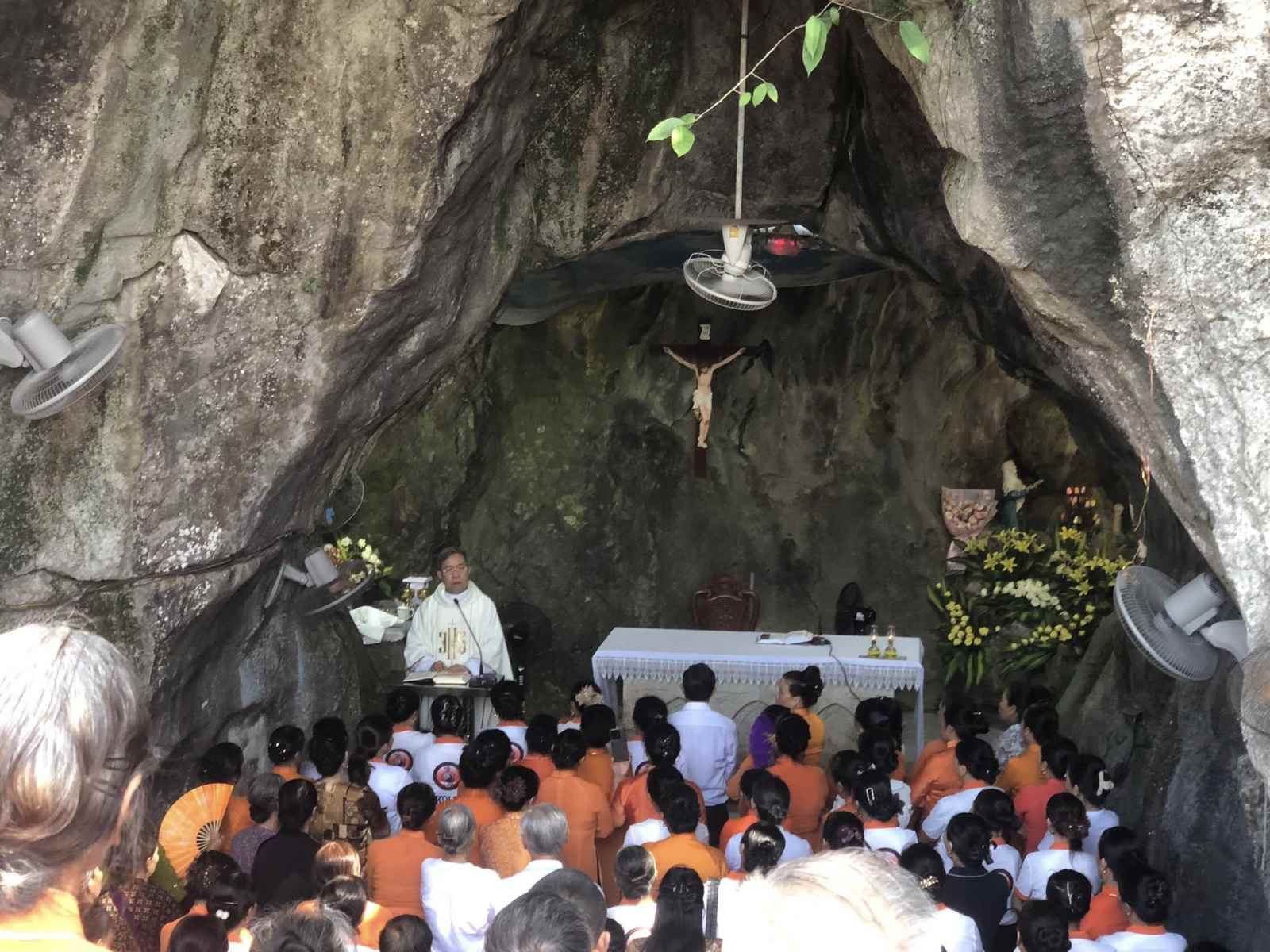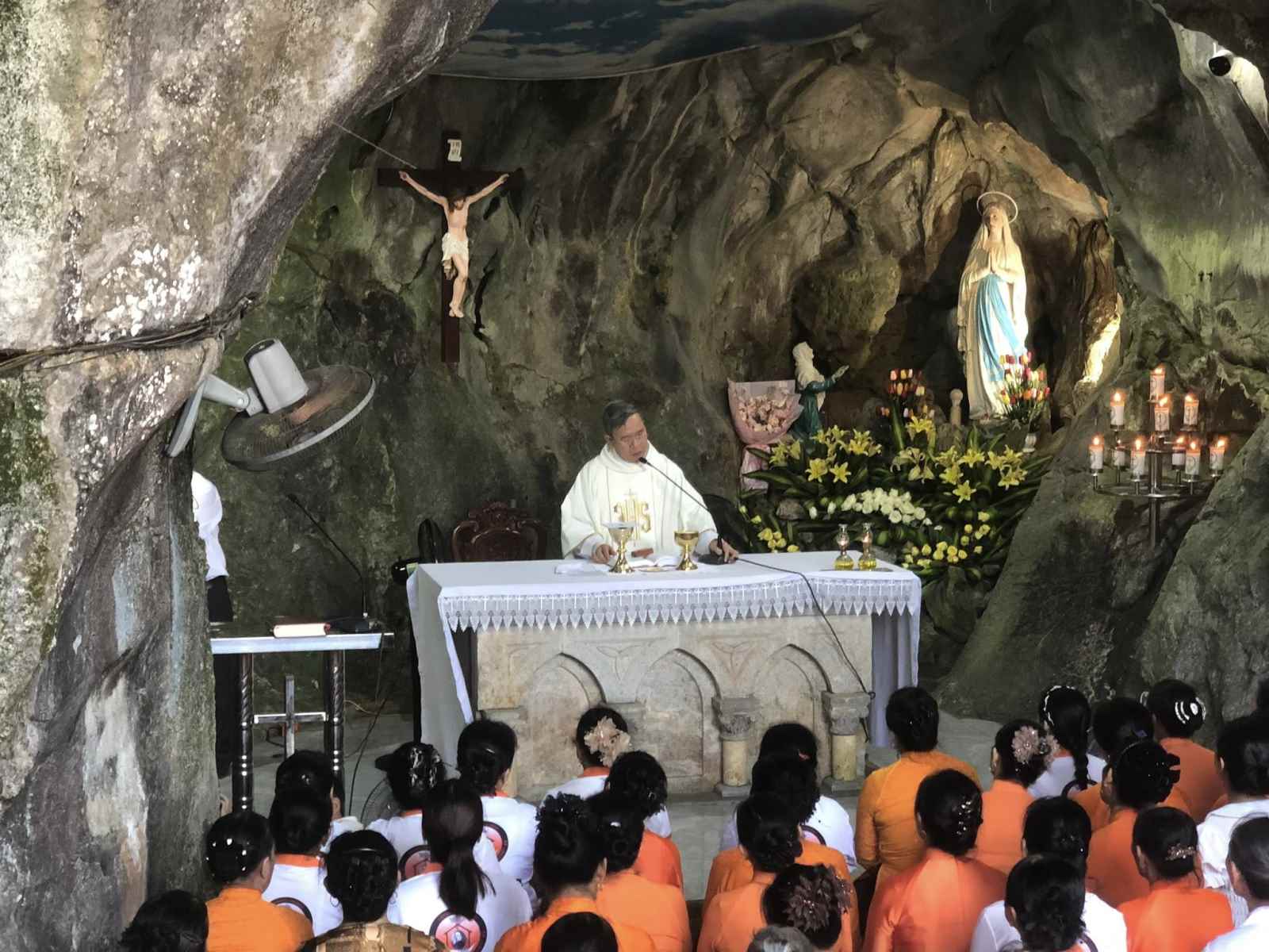Vào lúc 8h30, Cha Giuse Nguyễn Xuân Phương – cha đồng hành của hội đoàn, đã long trọng cử hành Thánh lễ tại Núi Đá, trong bầu khí trang nghiêm và sốt sắng.