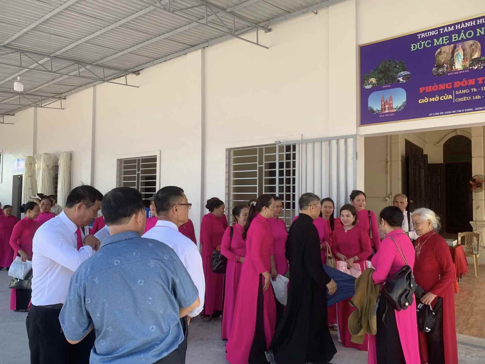 Về đến Trung Tâm đoàn được Cha quản Hạt và Ban Năm Thánh Giáo xứ tiếp đón và hướng dẫn, sau thời gian nghỉ ngơi đoàn đã cùng Cha lần chuỗi Mân Côi và xếp hàng thứ tự cùng lên Núi Thánh Dâng Lễ.
