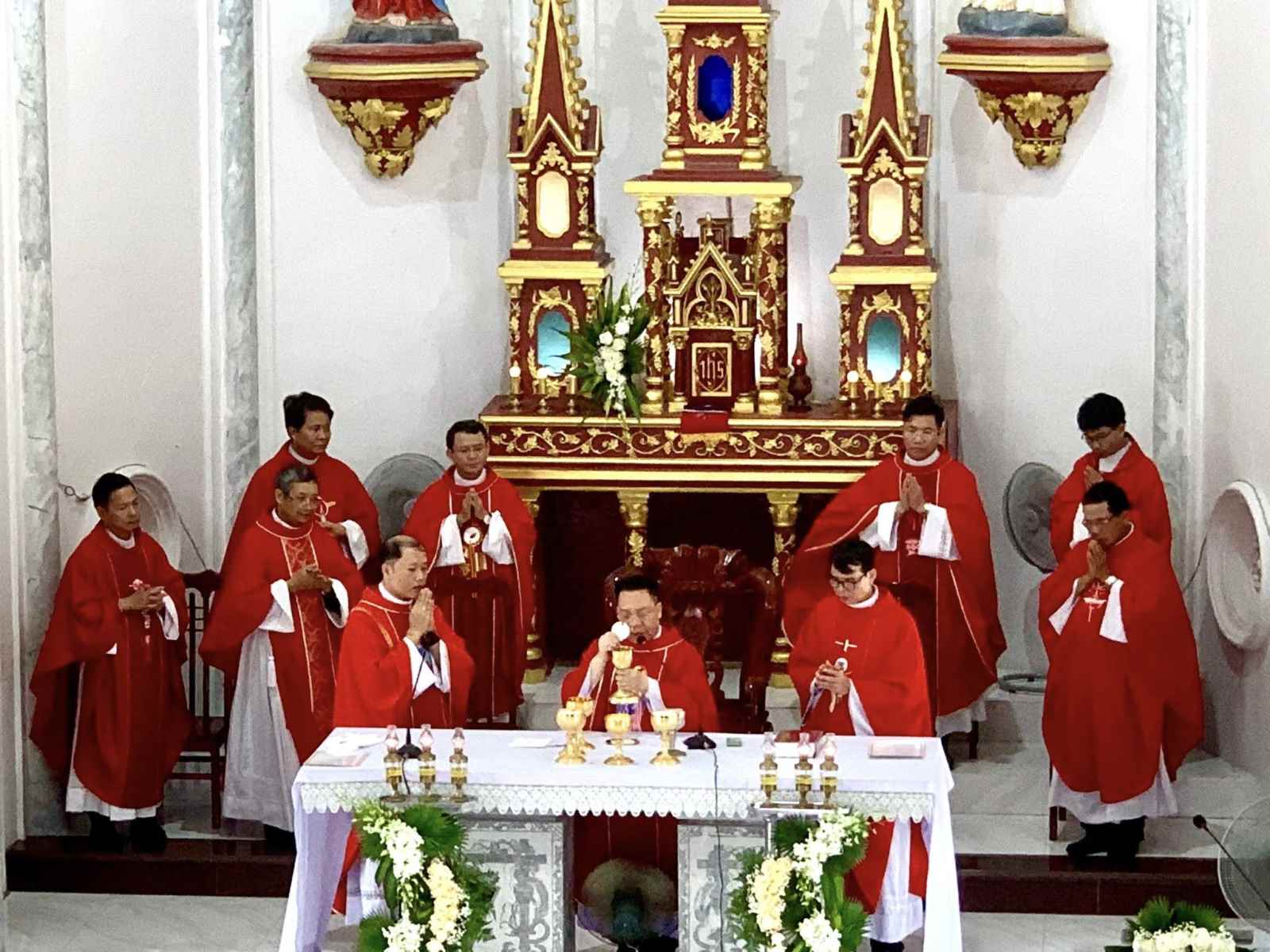 Thánh lễ do Cha Martino – nguyên là cha tiền nhiệm của giáo xứ chủ sự. Đồng tế với ngài có Cha Quản hạt, quý Cha phụ tá, quý Cha quê hương cùng quý Cha khách. Hiện diện trong Thánh lễ còn có quý Thầy, quý Sơ, quý chức và đông đảo cộng đoàn dân Chúa trong và ngoài giáo xứ đến hiệp dâng lời tạ ơn và cầu nguyện.